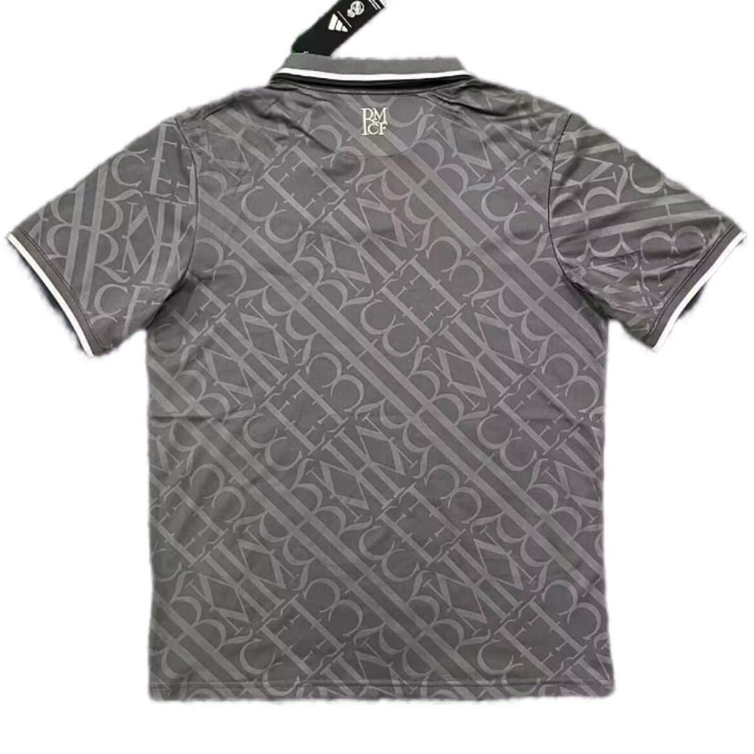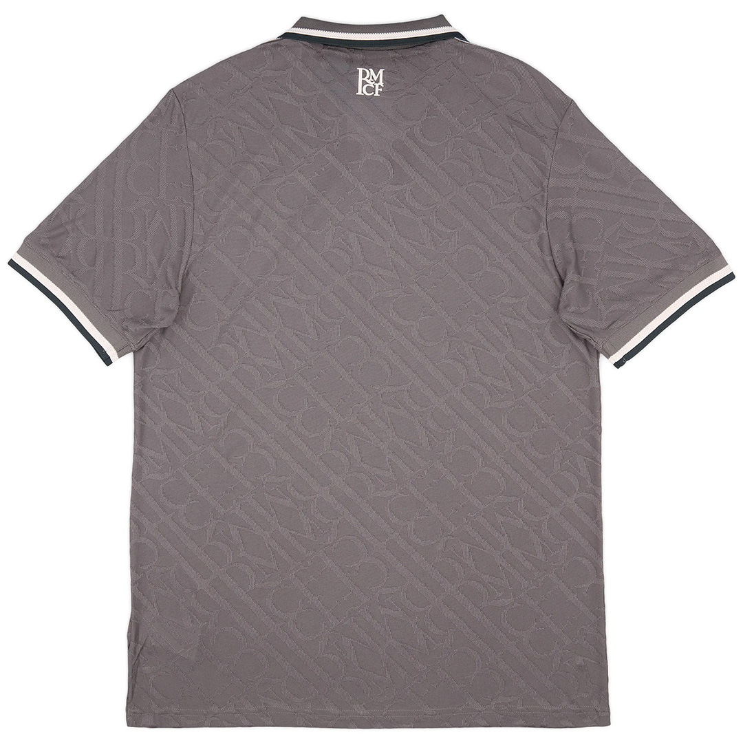 The Real Madrid 2024-25 third shirt has a charcoal brownish-grey (Charcoal) main color combined with 'RMCF embossing all over the shirt for a unique look.