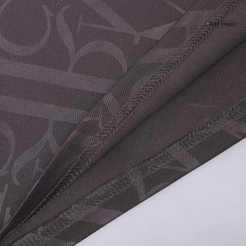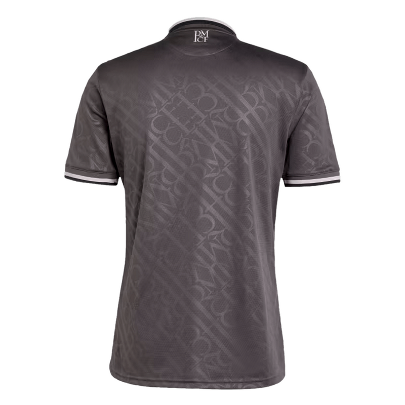 The Real Madrid 2024-25 third shirt has a charcoal brownish-grey (Charcoal) main color combined with 'RMCF' embossing all over the shirt for a unique look.