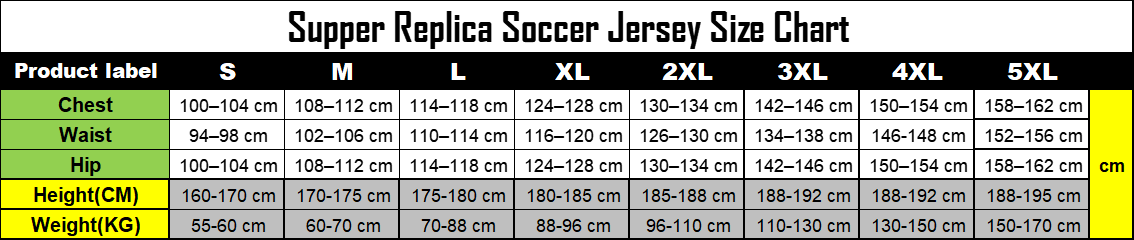 Please Choose Size follow this Size chart for our [Supper Replica Soccer Jersey] :