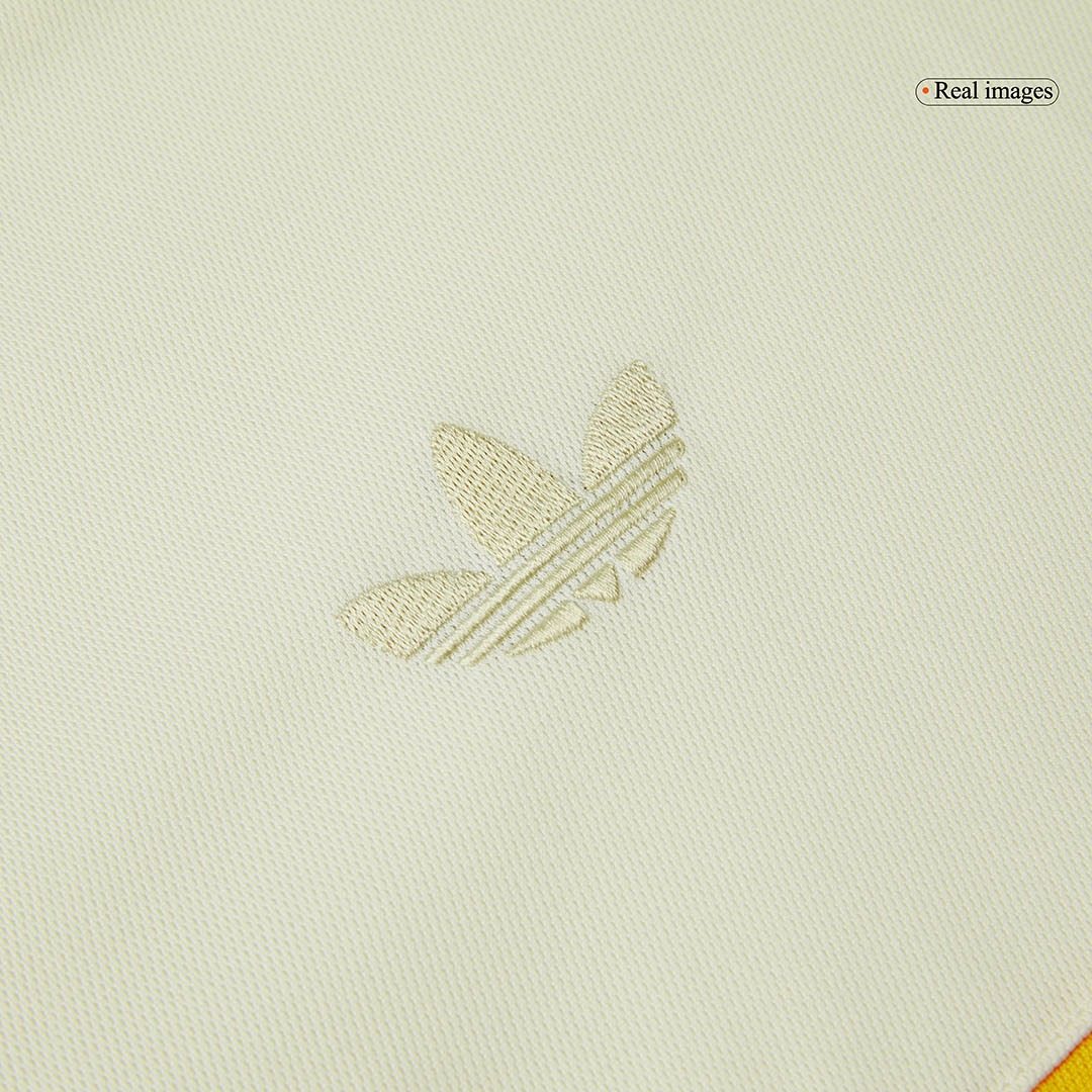 The Colombia 2024 100-year anniversary football shirt features the Trefoil logo, and the Colombia football crest is the same color as the shirt, making it invisible from a distance.
