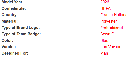 • Color Scheme: The home jersey combines the primary color “Game Royal” with “Metallic Copper” as the secondary tone, referencing the traditional blue of Les Bleus and the oxidized copper surface of the statue.