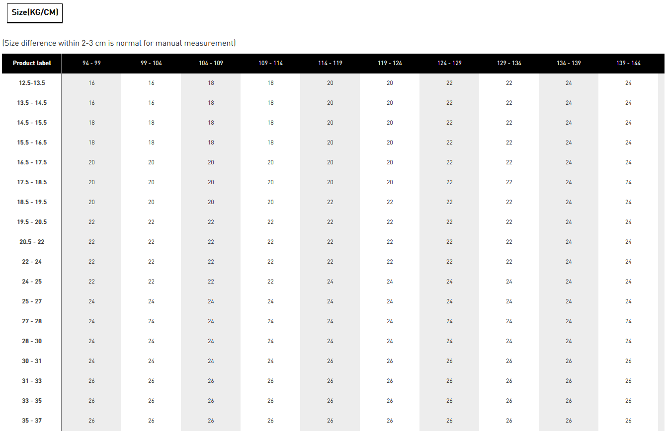#16 (2 Years)#18 (4 Years)#20 (6 Years)#22 (8 Years)#24 (10 Years)#26 (12 Years)#28 (14 Years)