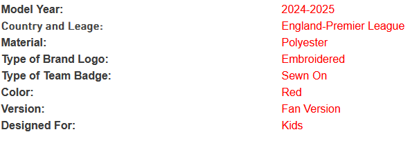 Kids Arsenal Home Jersey Kit 2024/25