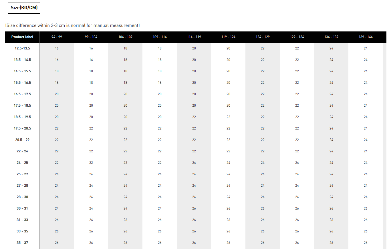 #16 (2 Years)#18 (4 Years)#20 (6 Years)#22 (8 Years)#24 (10 Years)#26 (12 Years)#28 (14 Years)