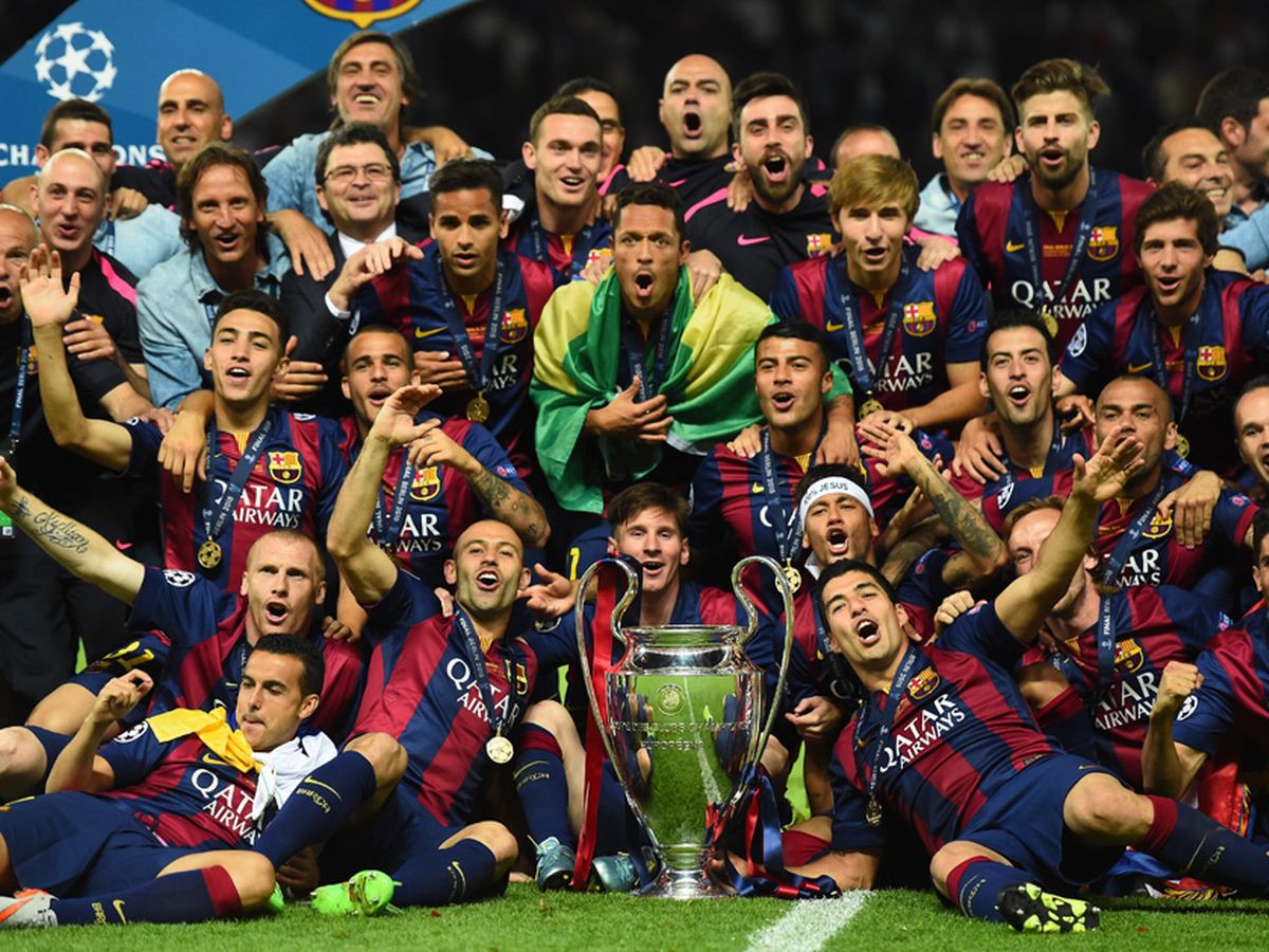 The new FC Barcelona 2014-15 comes with less vertical stripes and features blue sleeves.